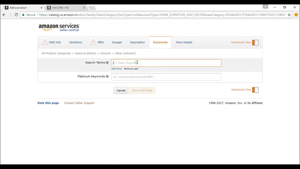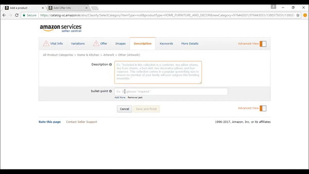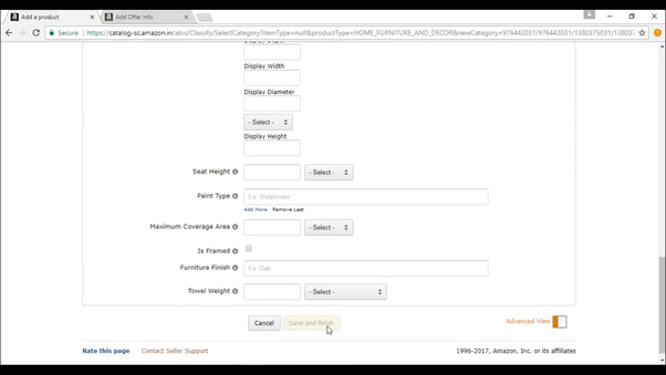 You can click on save and finish and your product will be listed within 15 minutes on amazon india marketplace or click on advanced view to add more details.