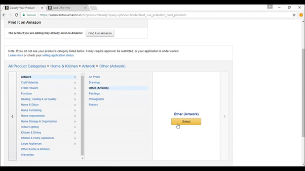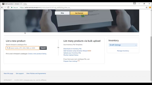 Step 2: Now search for the product you want to sell. If the product is listed on amazon you can create offer in the present listing..