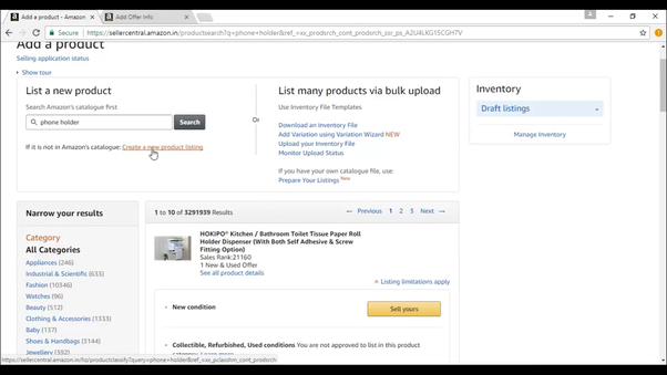Step 5: If the product is not present in the amazon catalogue then click on create a new listing product option.