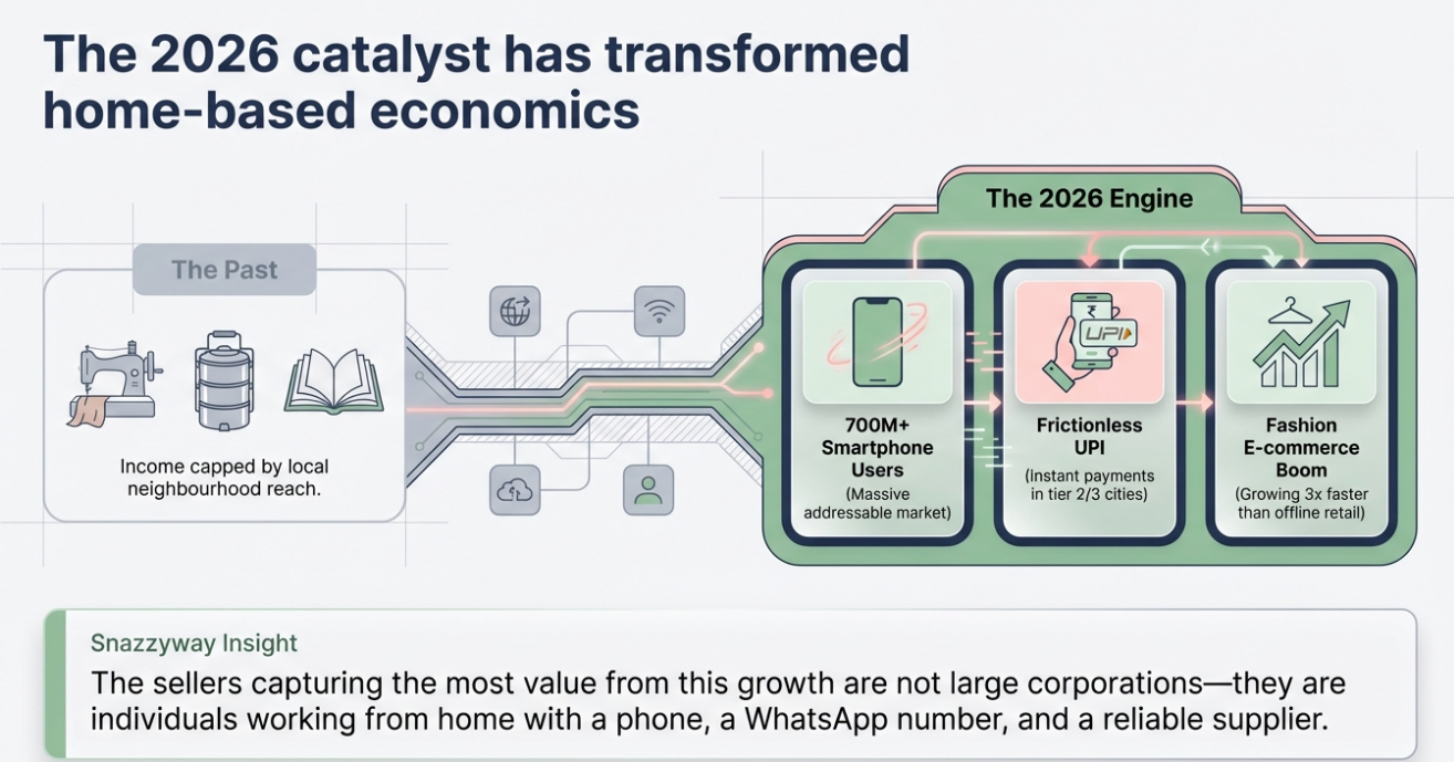 Fashion ecommerce in India has grown 3x faster than offline retail in recent years. That growth has not slowed down. And the sellers capturing the most value from that growth in 2026 are not large companies — they are individuals working from home, often with nothing more than a phone, a WhatsApp number, and a reliable supplier.