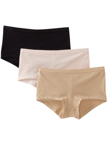 - Hanes boyshort panties, 3-pack, with a sporty waistband that won't pinch or bind