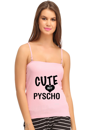 Ladies Baby Pink Cute Printed Square Neckline Cami Tank Top