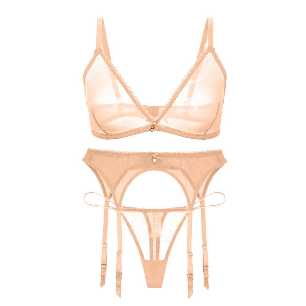With our Beautiful Sheer 3-Piece Lingerie Set, you can show off your beauty. This set was made to impress with its beauty and charm. For a short time only, you can get a 30% discount. Shop now to add to or change your collection of underwear.