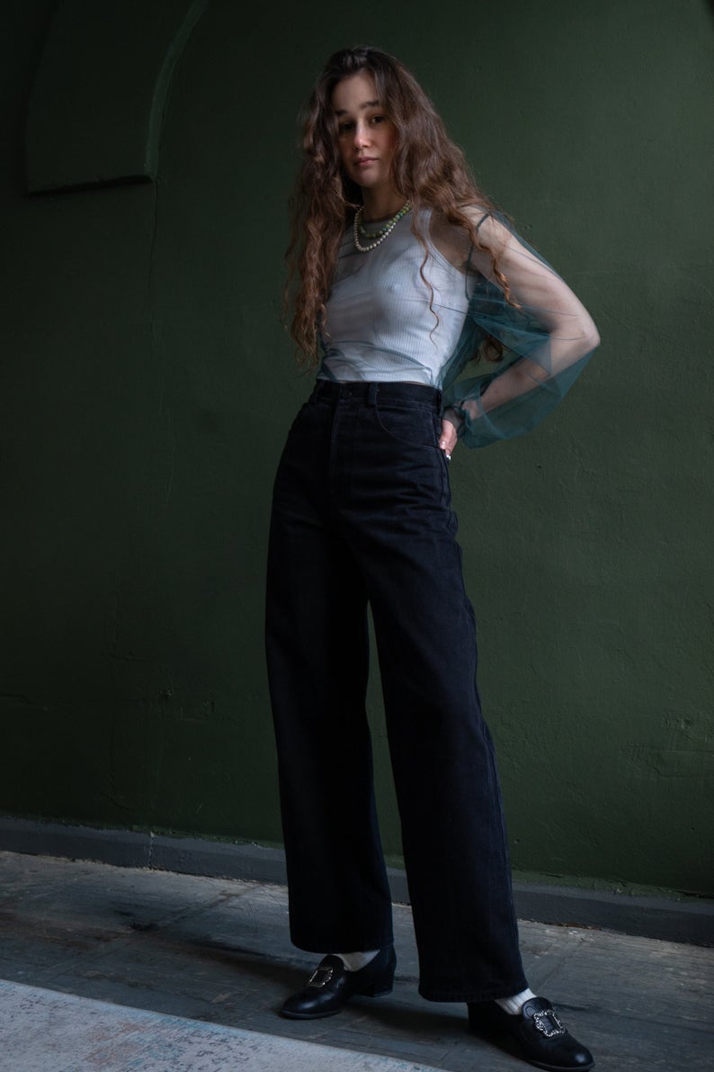 Black high waisted jeans. High rise jeans with a straight leg Also available in Gray, Dark Blue, Medium Blue, Light Blue, and White denim. Made 100% cotton denim Length 110 cmBased on 0 reviews
