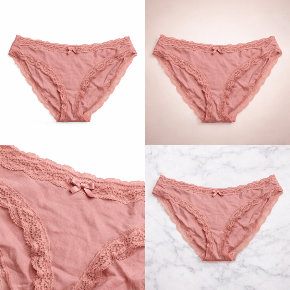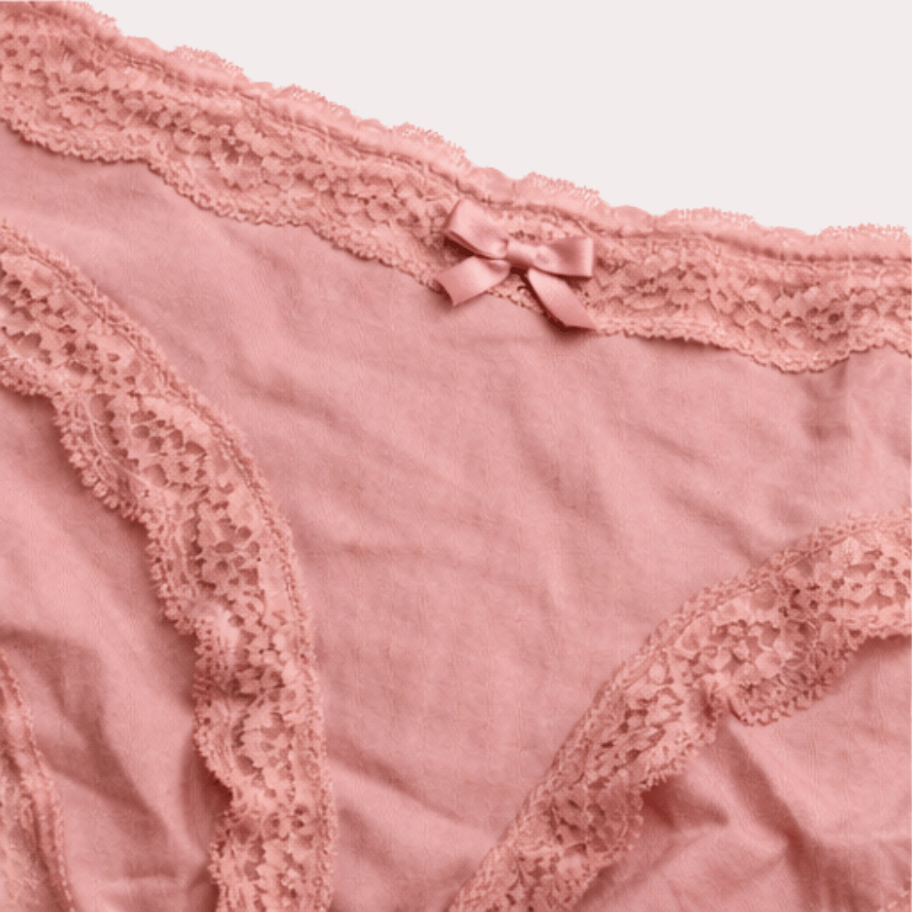 Elegant blush pink lace panty featuring soft breathable fabric, delicate lace trim, and a charming bow detail for comfortable everyday wear.