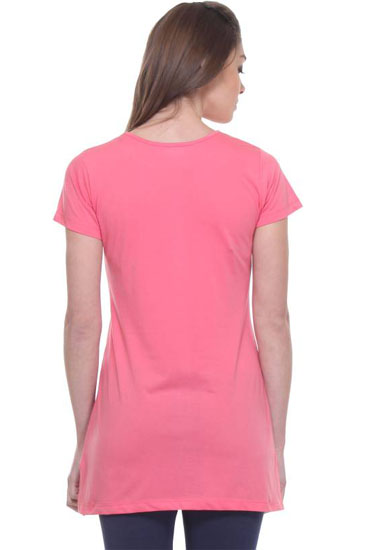 Add a new T-shirt with a funky twist to your wardrobe with the Buddha Printed Pink Comfy Tunic. This round-neck tee includes a round neck with delicate details sewn across. The long hem of this tunic falls at thigh-length with slits on the sides to help the hem flow with you as you walk. The soft fabric of this short-sleeve tee is no show decoration and looks amazing stylish. A decent buddha print adds to the casual look of this tunic. Pair with your favorite skinny jeans or leggings for a comfortable day out. This beautiful creation will give you a trendy look when clubbed with matching leggings and sandals.- Made by cotton material