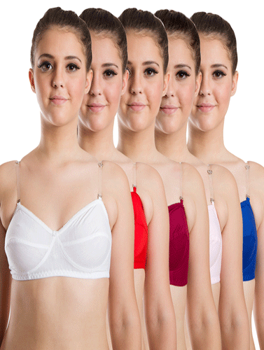 "Comfy Cotton" Transparent Straps Daily Wear Bra Pack Of 5
