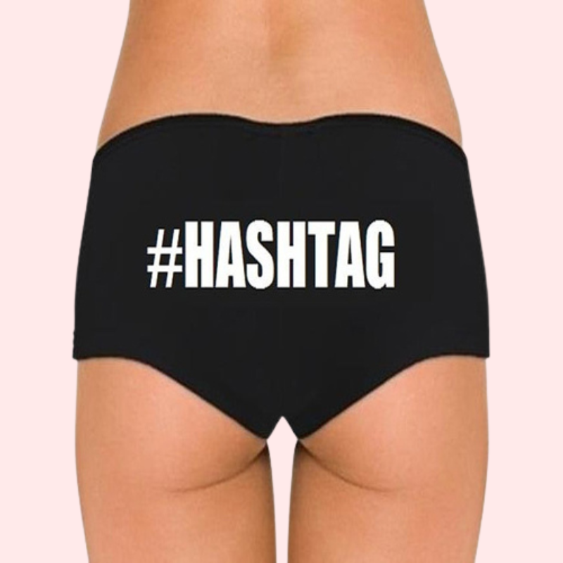 Make a statement with the Customize Black Hashtag Cotton Boyshort Panty. Made from soft, breathable cotton, these boyshorts offer a comfortable and stylish fit. Personalize them with your favorite hashtag to add a trendy and unique touch. The black color and hashtag customization make them a modern and playful addition to your lingerie collection. Perfect for daily wear or as a standout gift, these boyshorts blend comfort with personal expression.