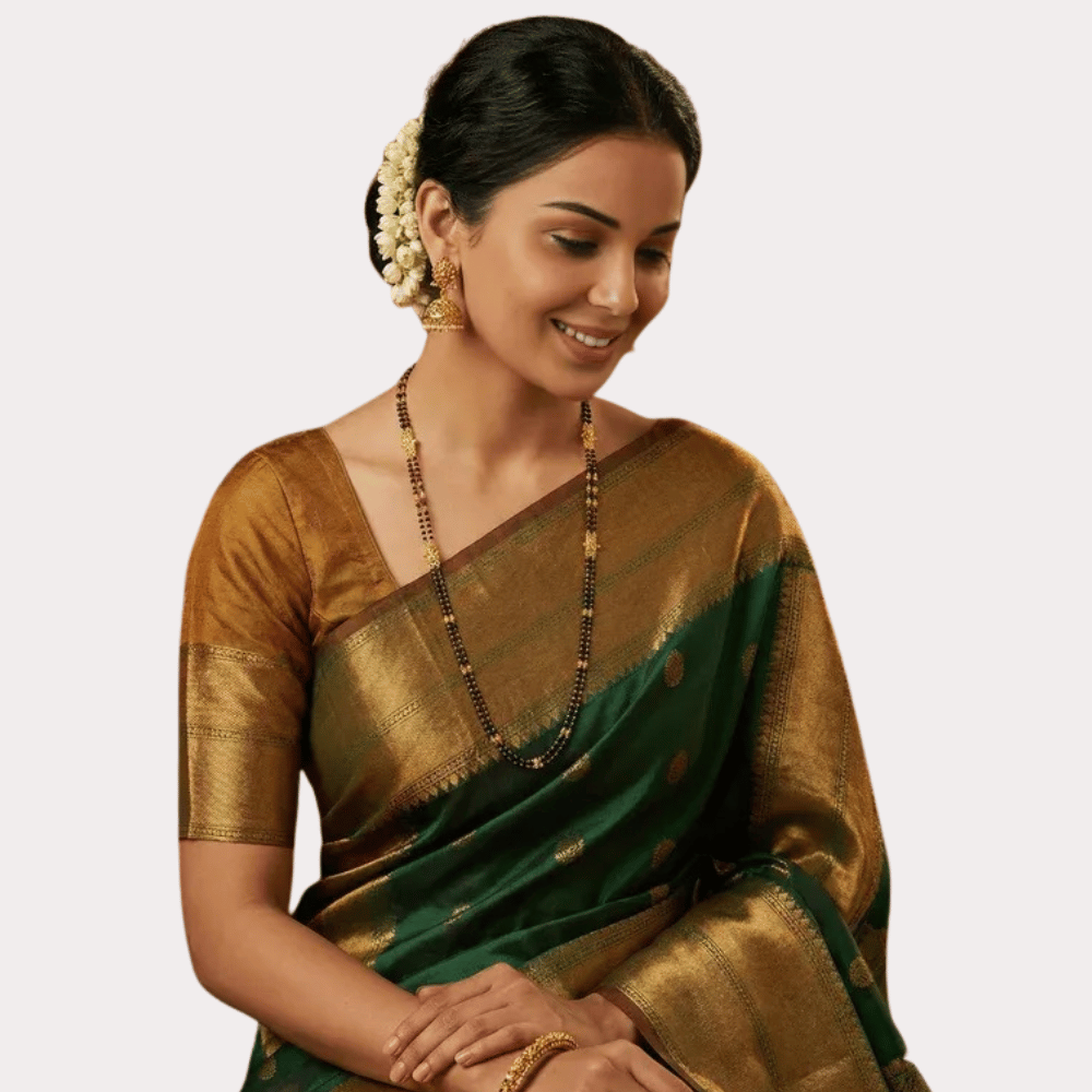 Embrace timeless beauty with this elegantly designed dual-strand mangalsutra, crafted for women who appreciate subtle sophistication. Featuring two delicate strands of traditional black beads, enhanced with minimal gold-toned accents, this piece offers a refined and modern take on a classic symbol of love.