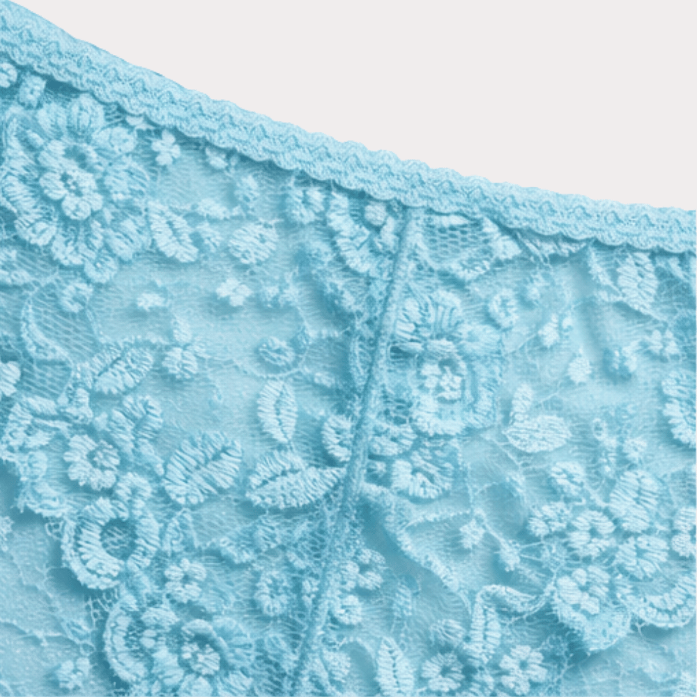 Soft sky blue lace panty featuring delicate floral lace fabric and scalloped edges for a feminine and comfortable fit.