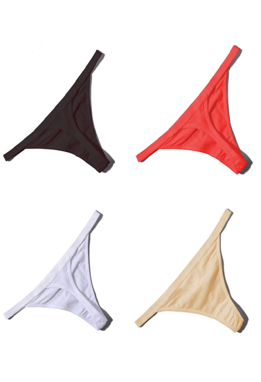 Get 4 cotton thong panties for all day comfort, movement and ease. It is constructed from a soft, durable and stretchy fabric that will move with you as you go about your day. These thong panties feature a durable seamed construction, are tag free, and will leave little or no visible panty line. They also have a wide waistband and satin leg elastic for extended comfort. These women’s thong 4-pack panties are available in an assortment of colors and patterns.- Cotton & Elastane