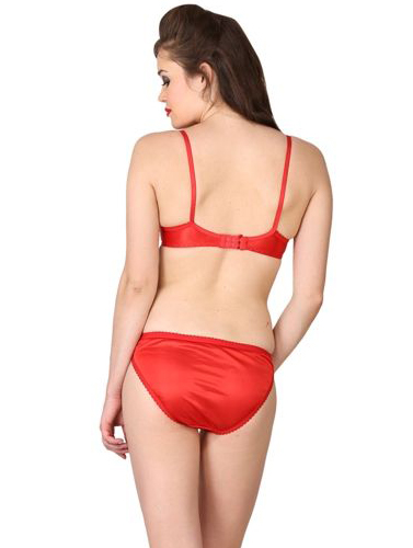 Add this Gorgeous Soft Red Bra Panty Set to your collection! The Red color satin bra is magnificent. Feel flirty in this shiny bra and panty. This fabulous color is to die for. This bra features a back closure and adjustable straps. This is the ideal 2 piece set for an affordable price. The panty with lace styling on the side front. Feel extraordinary underneath  all your favorite clothes. Who says looking good comes at a price? Party it up in style and comfort with this Gorgeous Soft Red Bra Panty Set. Not only does this non-padded and non-wire bra feel good, it also looks smoking hot with its lacy touch at the front and funky hot red straps.- Luxurious look