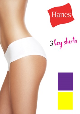 Perfect ensemble of cuteness and comfort! Hanes brings to you, pack of 3 cotton rich briefs, plain feature. Our best selling Hanes Soft Mid Rise Boyshorts Pk Of 3;for a smooth and comfortable essential pick up these comfort short and provides maximum rear coverage. Girls rock the boyshort ,which are ideal for super soft everyday wear and are undeniably unique in comfort and fit. Why To Invest In Boyshort????- Mid-rise boyshort brief
