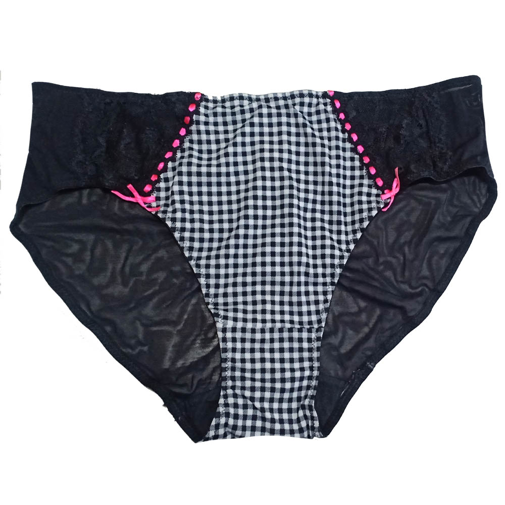 ♥Kayser Women Black Front Black & White Checkered See Through Back Hipster Panty