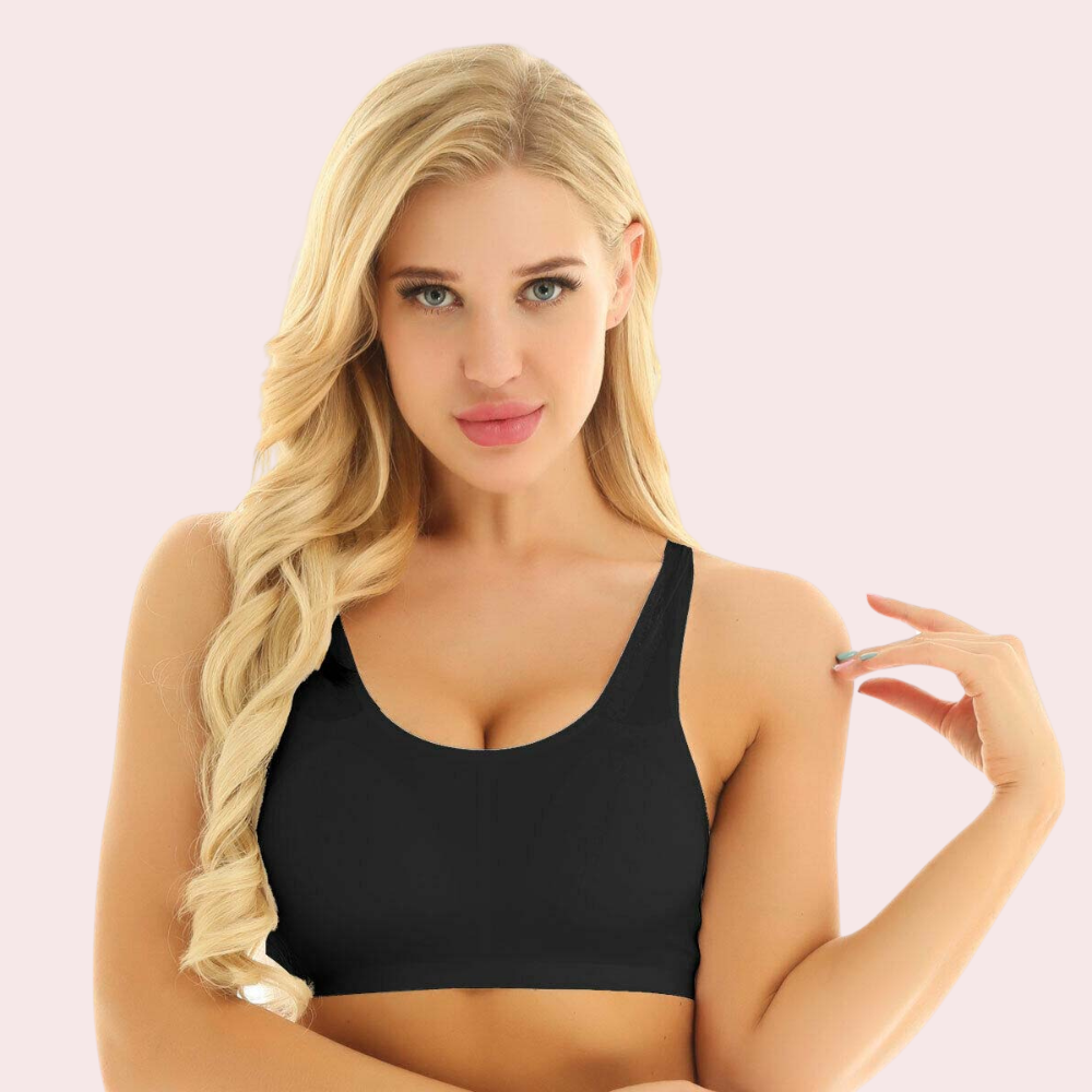 Featuring pull over style seamless design, perfect for floor exercises. Made from breathable dry fit fabric that wicks sweat to keep your skin dry and help prevent irritation. Perfectly designed with high coverage cups to compress your bust and reduce bounce. Ideal for medium impact activities like yoga, gym and power walking.