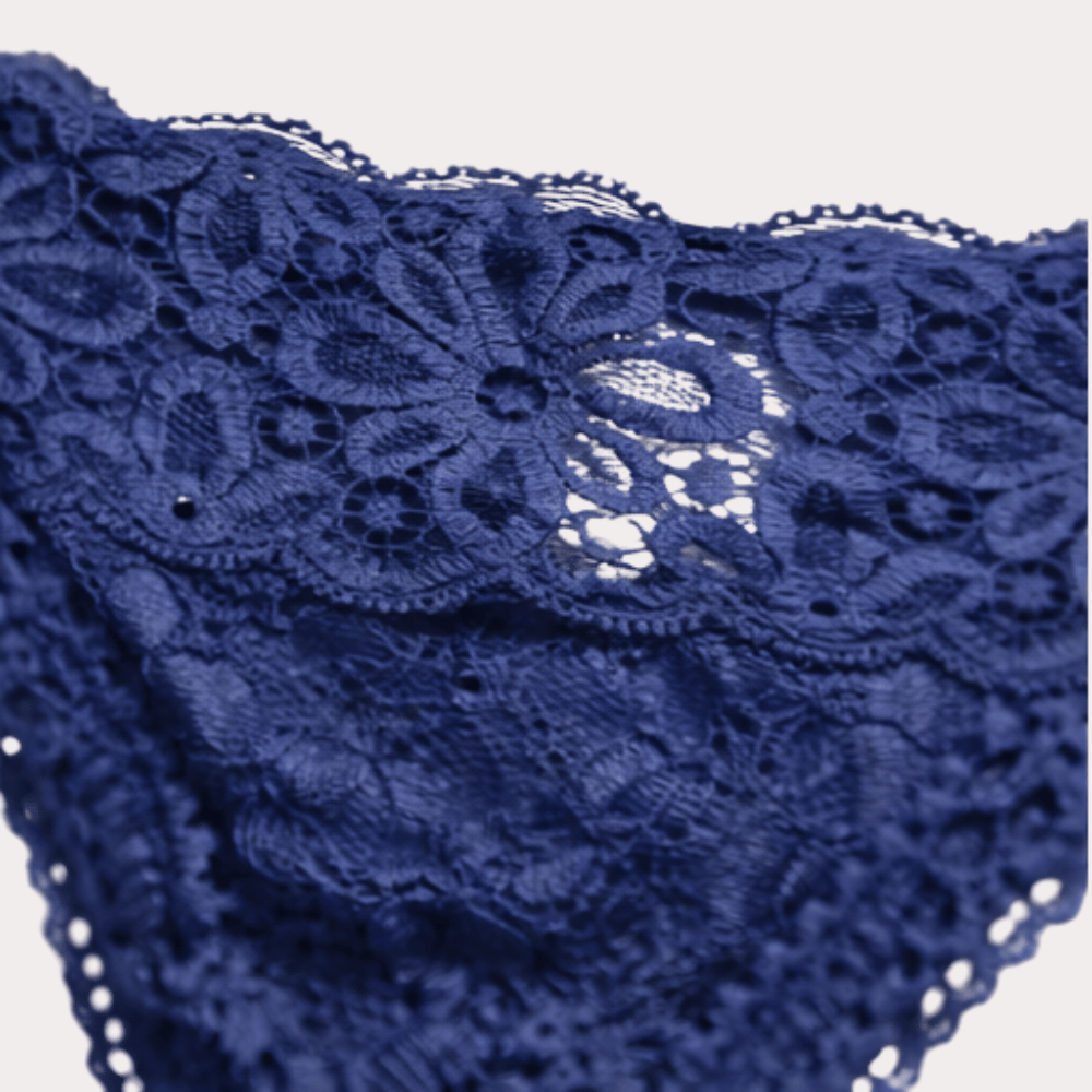 Elevate your lingerie collection with this beautifully crafted midnight blue lace thong panty. Designed with intricate floral lace detailing, this piece offers the perfect balance of elegance and comfort.