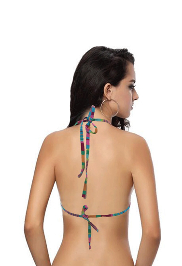 Multi Color Stripes Halter Bikini Top