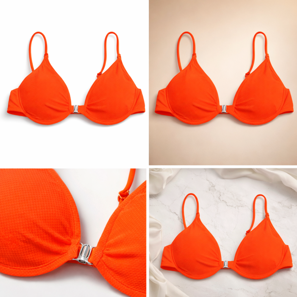 Neon Orange Underwired Bikini Top for Women – Adjustable Strap Swimwear Top