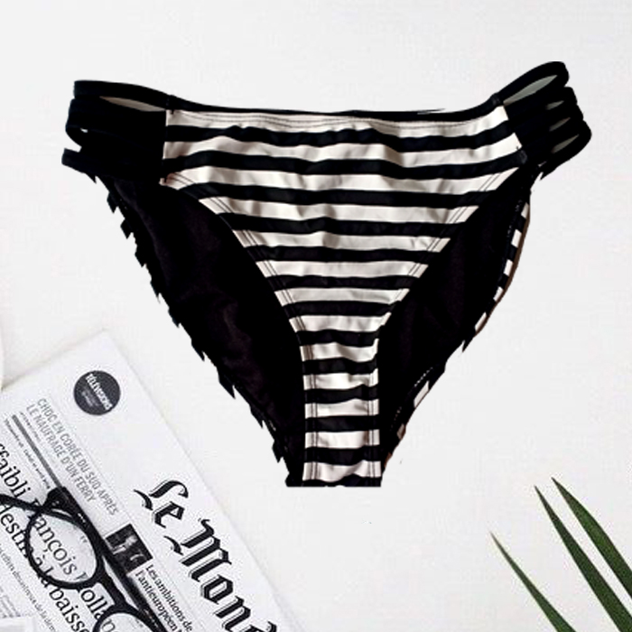 You will become more unique and fascinating just with our Now Side Straps Black & White Bikini Bottom. Mid waist design flatten tummy with moderate control features, hide your waist flabby skin immediately without a trace, make you look slimming.- Made by nylon and elastane material