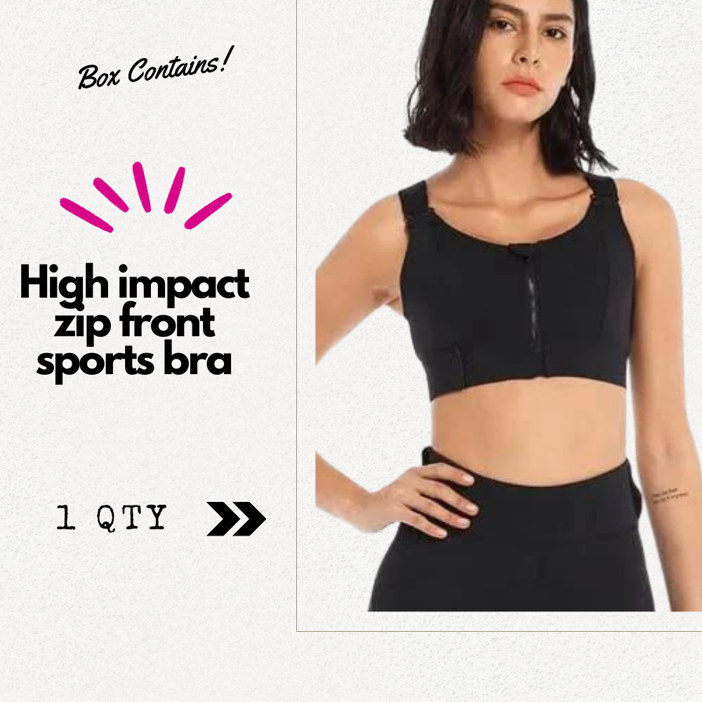 1 High impact zip front sports bra