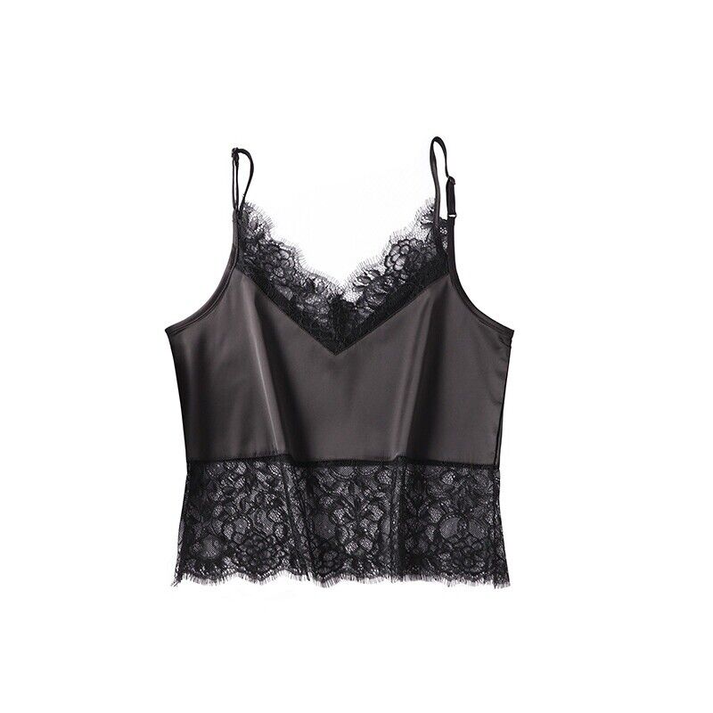 ✓Size : M, L, XL ✓SKU : MTSQSLFC2W ✓Color : Black ✓Material :Silk Satin ✓Pattern : Cami Top ✓Feature: Adjustable & Detachable Straps