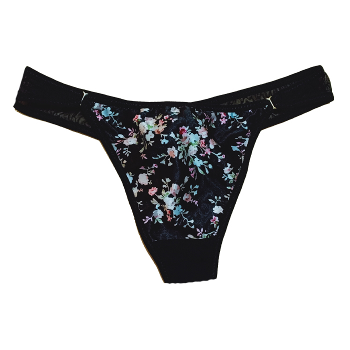 Screwball Lady's Black Floral Print Bikini Bottom