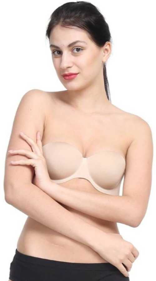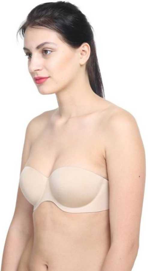 "COMFY" Seamless Strapless Backless Beige Women's Push Up Heavily Padded Bra