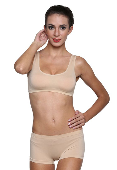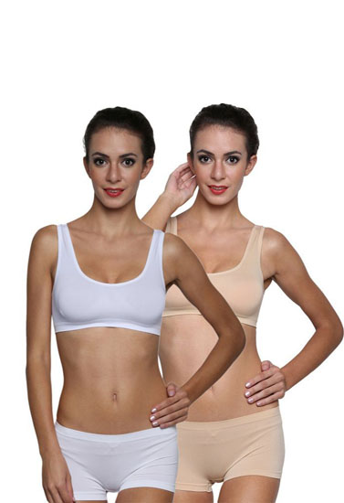 Add some purity and cleanliness in your drawer with Seamless Stretchy Beige White Sports Bra Set. Just because it's called a sports bra doesn't mean you have to be playing sports to wear it. You'll appreciate the comfort and support of these seamless bra and boyshort set. If you're tired of underwires poking and scratching at your skin, or underarm bulge ruining the silhouette of your outfit, then you need to try these bras. These great stretchy high quality material boyshorts are perfect under any time of clothing and amazingly comfortable. Seamless, soft, and smooth feel to your skin. Perfect with any outfit, you'll be comfortable all day long, with the added bonus of a flattering fit!- Pack Of 2