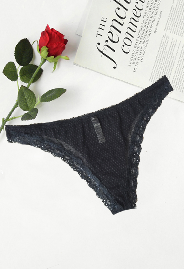 Net Lace Trim Thong Panty provide a more comfortable, form-fitting fit for every lady. This new lace panty is the ultimate in comfort and style. Start your mornings with style and comfort in this Net Lace Trim Thong Panty. They feature a new nylon-covered waistband for enhanced comfort. Designed to protect from pinching as well as to be non-binding, this nylon thong panty is ideal to wear every day. They are not only soft against the skin, but also tag-free for maximum smoothness.Important Features