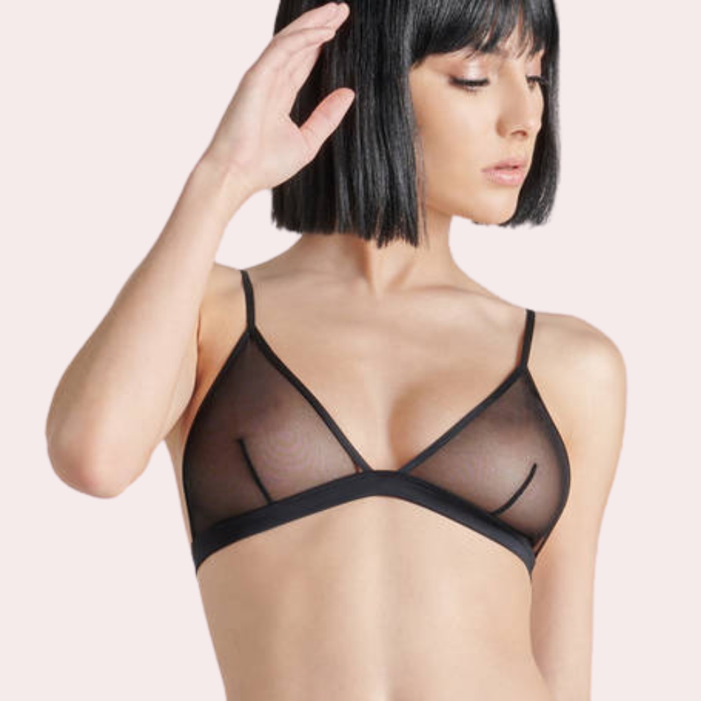 Our Seductive Black Fully Transparent Bra, a stunning piece that pushes the limits of what is attractive and classy. This bra is made for people who love to be seductive. It combines sensuality with bold design to create a memorable experience. The Seductive Black Fully Transparent Bra is a stunning mix of pure grace and daring charm. It was carefully made. The see-through fabric with soft patterns lets you show off your body in a way that is both sexy and provocative, sparking your imagination and highlighting the beauty of the female form.
