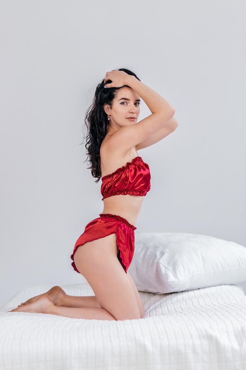 The bralette is of very simple construction - the gathered bandeau with soft elastic at top and bottom. The elastic is covered - and no and contact with your body. Nice ruffles at top and bottom - will make your look very feminin. Panties-french knickers are of loose fit, low rise, soft elastic and very comfortable. The panties are with the gusset at crotch - specially for you to feel comfortability during the sleep or everyday wear under the clothing.✓Brand: Snazzyway ✓SKU: ALD87UT6H ✓Color: Blue ✓Size: S-XL ✓Material:Satin ✓Pattern: Babydoll