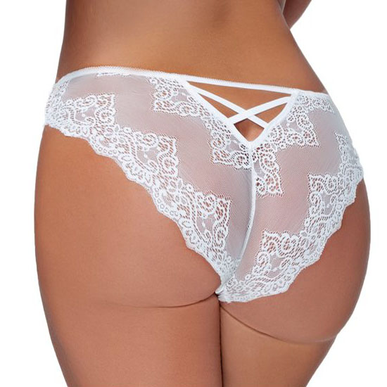 Lace and mesh bikini with strappy back cutout,cotton crotch for comfort