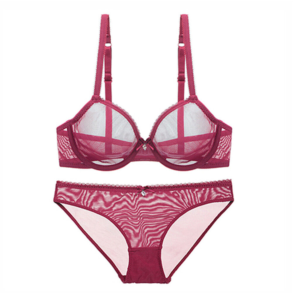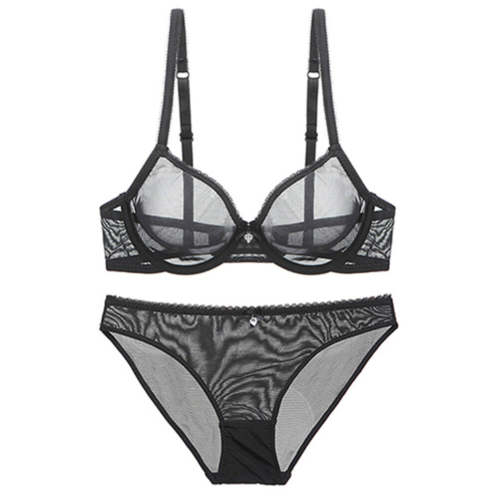 The bra features a see-through design that reveals just enough to tease and entice. It offers light support and enhances your natural shape. The adjustable straps ensure a comfortable fit, while the hook-and-eye closure adds convenience. The matching panty, also made from sheer lace, completes the tantalizing ensemble.
