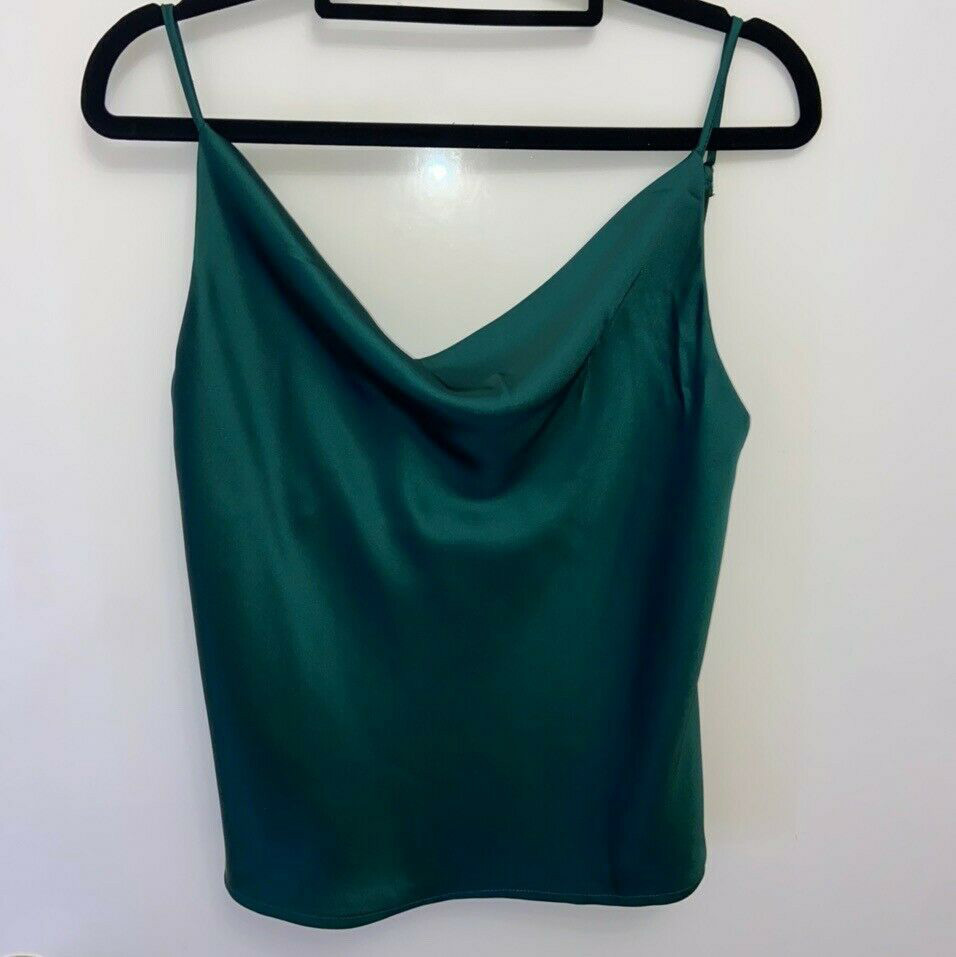 Silk Satin cowl neck green cami top