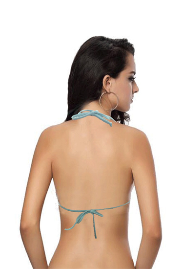 This Sky Blue Multi Colors Stone Studded Bikini Top makes a smart addition to any collection of swim apparel. Trimmed with rhinestones, it offers an eye-catching, unique appeal. This Sky blue Multi colors Stone Studded Bikini Top features Secure tie around neck and back, allowing you to choose your own snug fit and beautiful love embroidery design. Coordinate with a matching scoop bikini bottom for the ultimate swimsuit.- 90% polyamide and 10% spandex