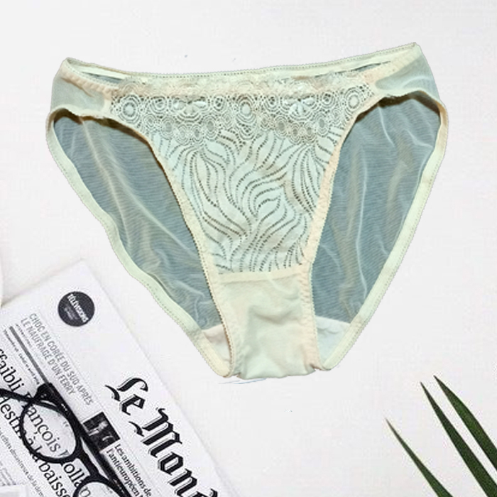 Your most basic, comfortable everyday panty is Snazzy High Leg Cream Lace Mesh Panty. As you see it provides high leg band, in which you feel most relaxing whole day long.- Made by polyester material