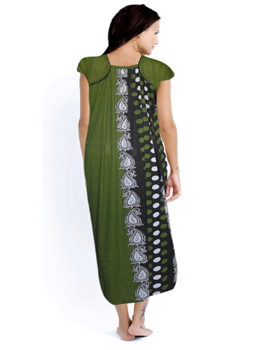 Dark Green Printed Full Length Nighty