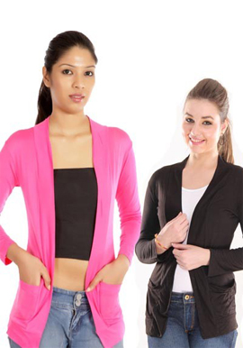 Why to invest inSolid Pink Black Front Pocket Shrugs Value Pack????