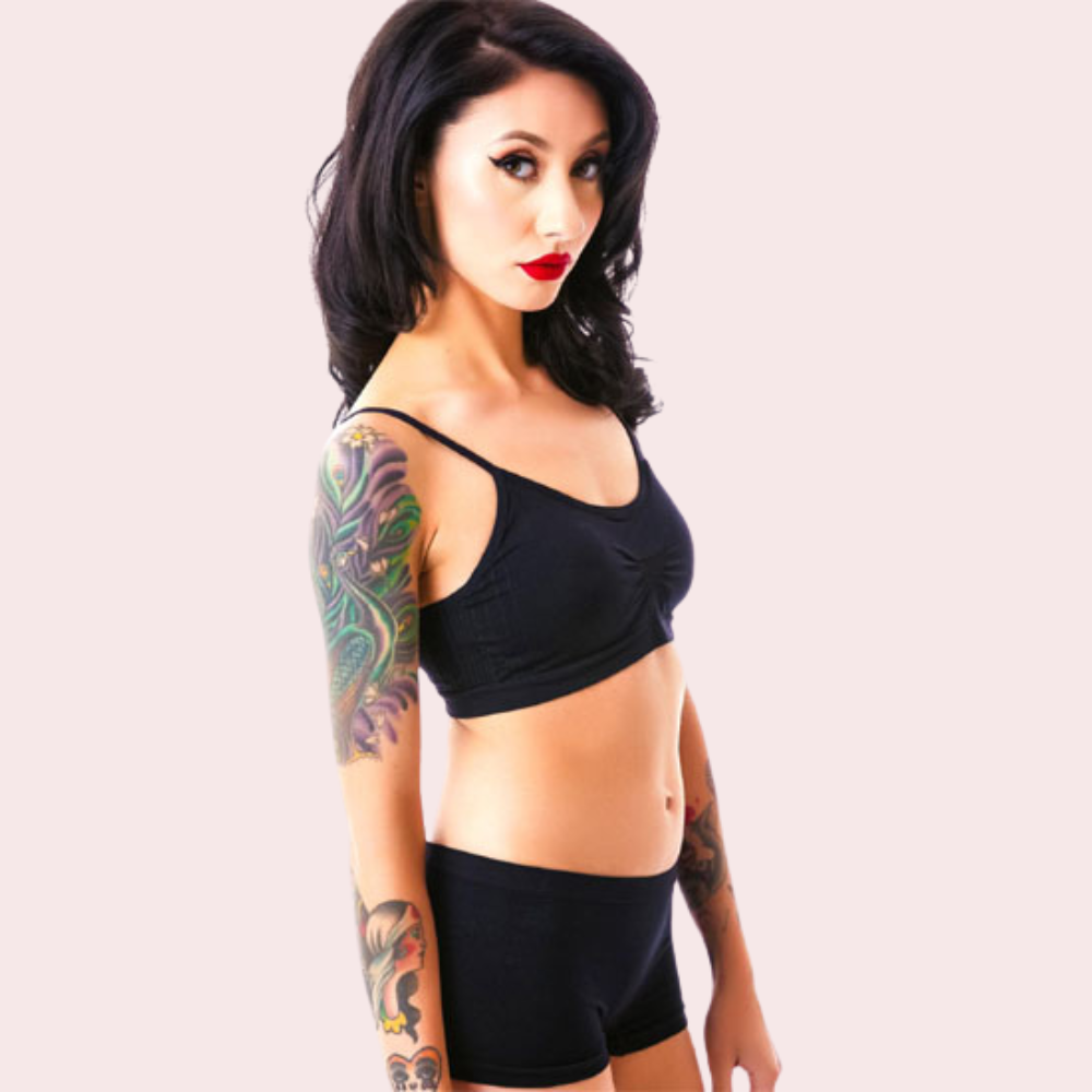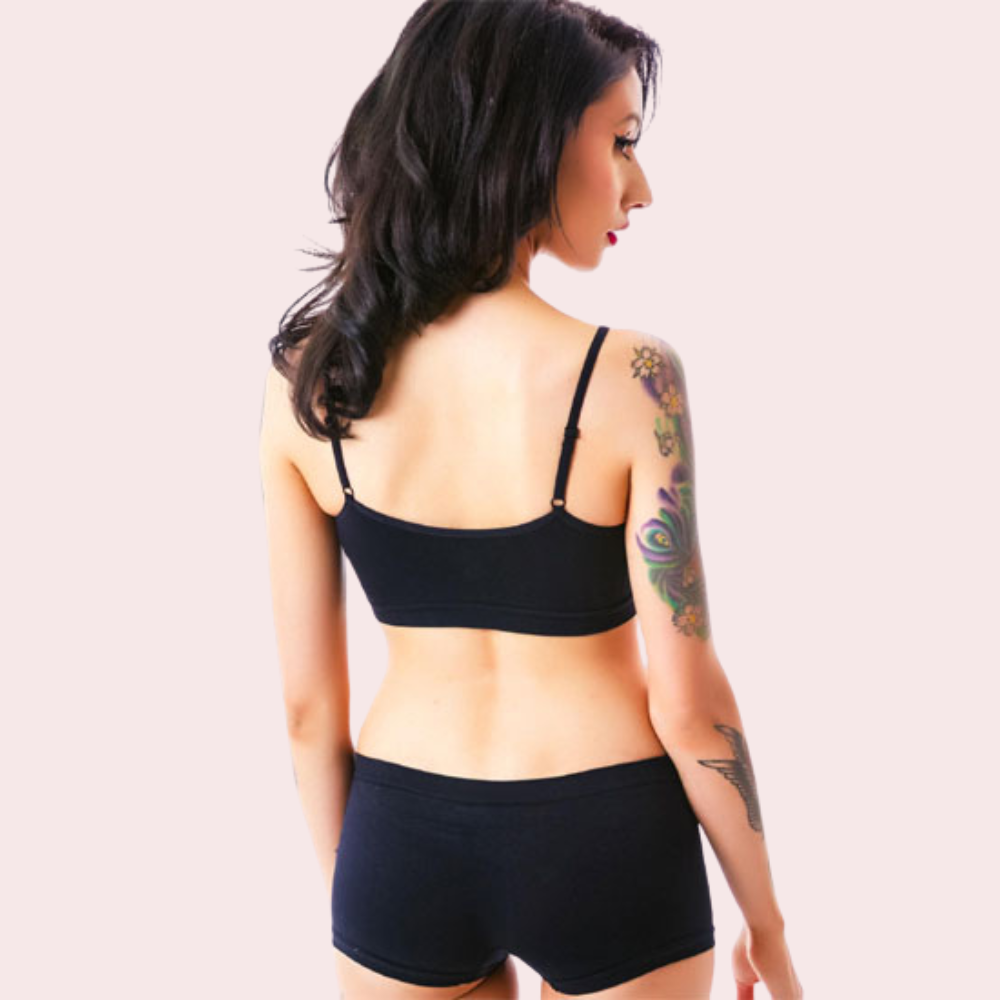 ✓Bra Style: Sports Bra ✓Brief Style: Boyshort ✓Material : Polyamide & spandex ✓SKU : ESSSBMB@83 ✓Size : S, M, L ✓Colour: Black