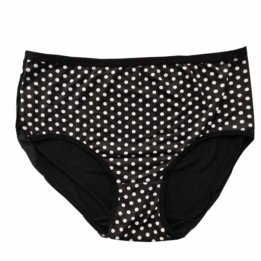 Super Comfortable White Dotted Black Cotton Plus Size Hipster Panty