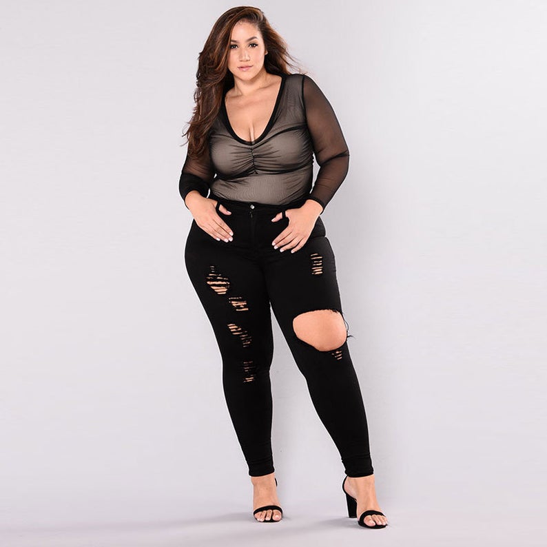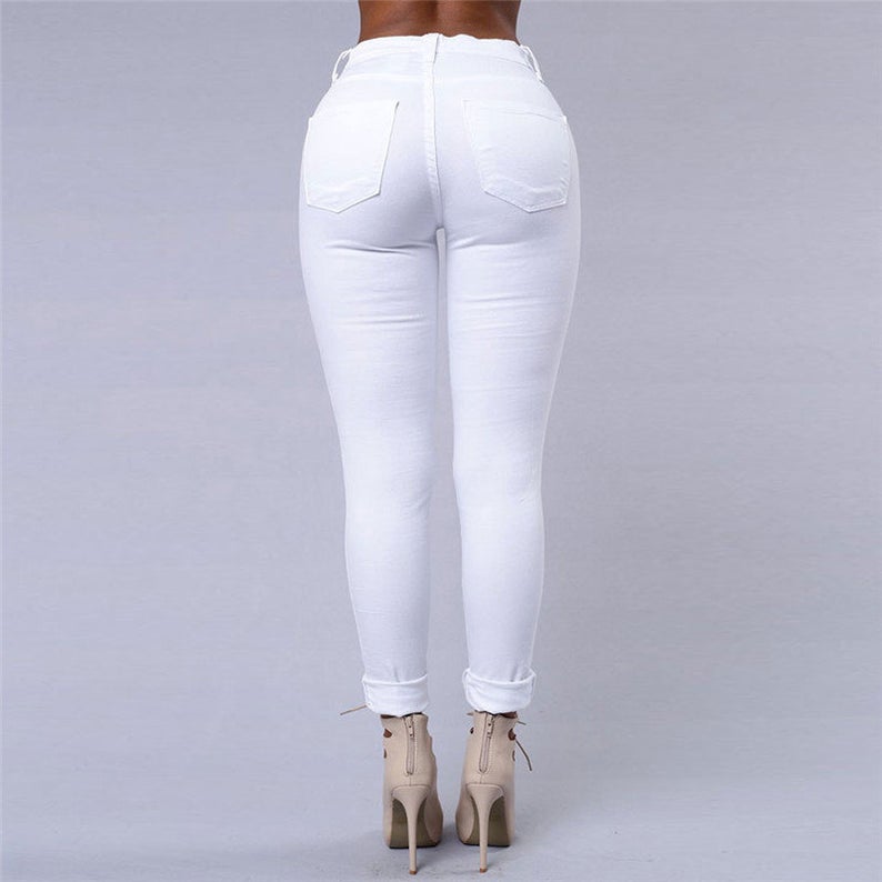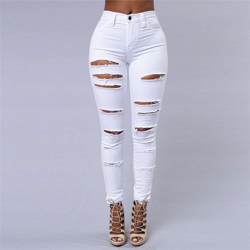 Women Fashion High Waist Solid Color Elegant Ripped Jeans Material: cotton Fast shipping 10 day guaranteeBased on 0 reviews