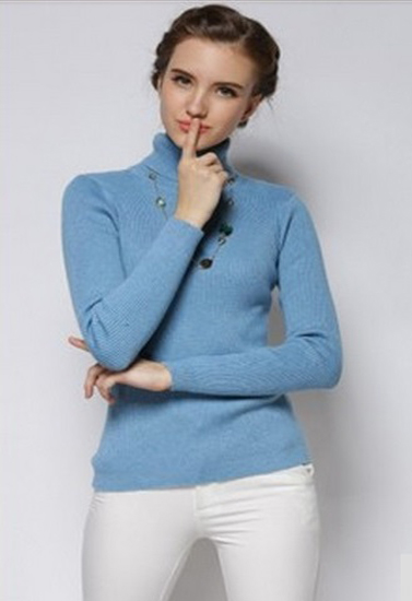 Women's Cool Stripes Lake Blue High Neck Sweater