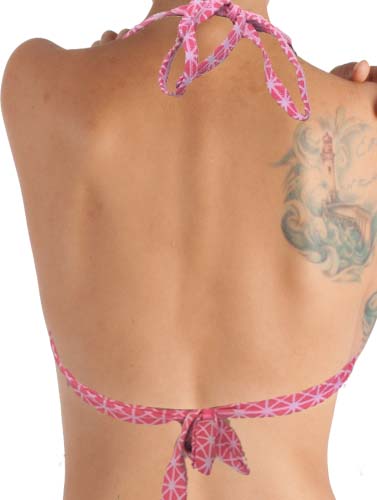 Women's Pink Printed Halter Bikini Top bright floral print that stands out beautifully against the crisp light pink hue.Featuring halter neck tie and back tie with front circle . Why Halter Bikini Top ??