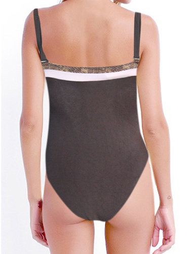 Women’s Sexy Brown One Side Print Swimsuit