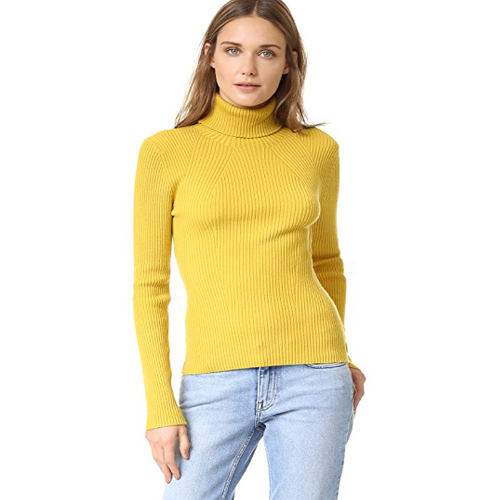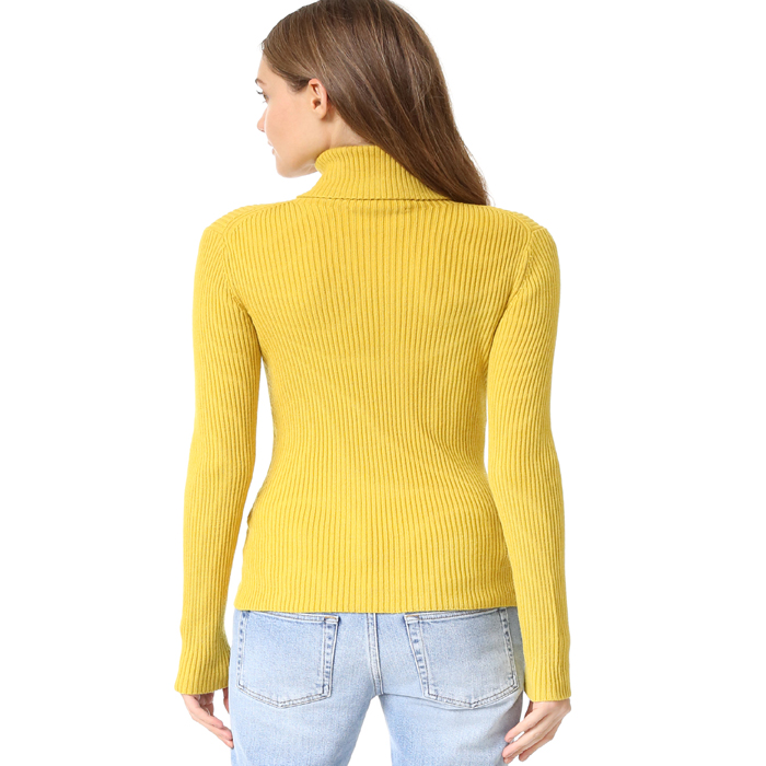 Women's Slim Knit Sweater  Knit from cashmere that's as airy as it is sumptuous, this yellow–hued turtleneck is a sleek style. Its slim fit makes it an ideal complement to leather pants or polished pencil skirts.Size ChartÂ