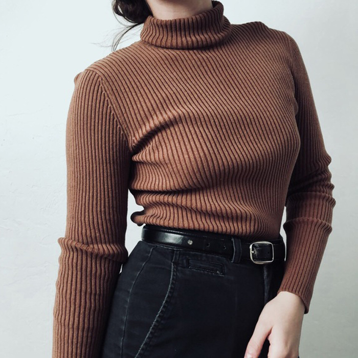 - Ribbed turtleneck