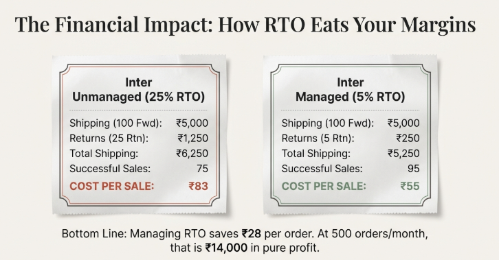 The difference is ₹28 per order. At 500 orders a month that is ₹14,000 saved every month — just by managing RTO better.