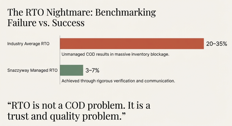 At Snazzyway, we brought our COD RTO down to 3–7% — compared to the industry average of 20–30% — by doing three things consistently: