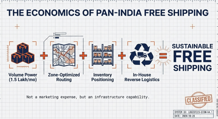 - Bulk courier contracts negotiated at volume — 1.5 lakh parcels per month gives significant bargaining power