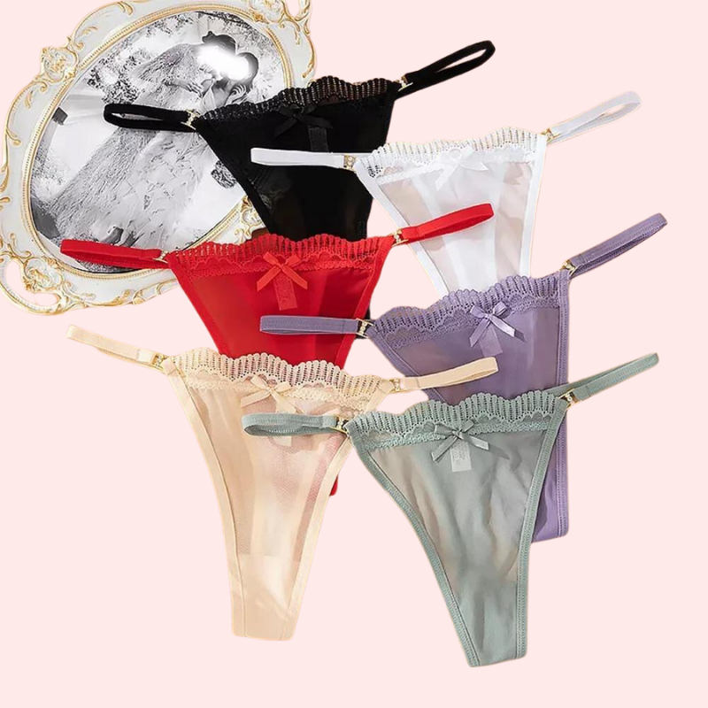 Our 3-Piece Sexy Lace G-String Collection, where elegance meets allure. This collection features three beautifully crafted G-strings, each adorned with delicate lace that enhances your natural curves. The low-waist design ensures a smooth, flattering fit under any outfit, while the intricate lace detailing adds a touch of sophistication and sensuality. Available in a variety of captivating colors, this collection offers versatile options to match any mood or occasion. Perfect for adding a hint of glamour to your everyday wear or making a statement on special nights, these G-strings are a must-have for any lingerie lover.